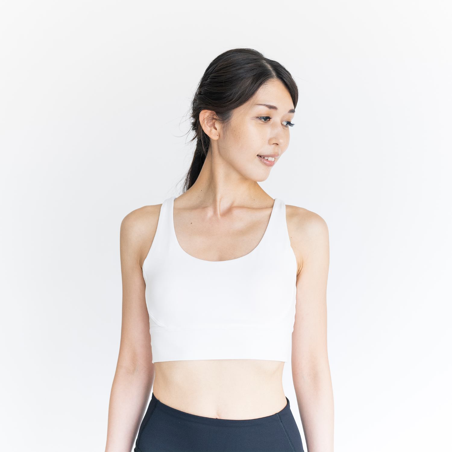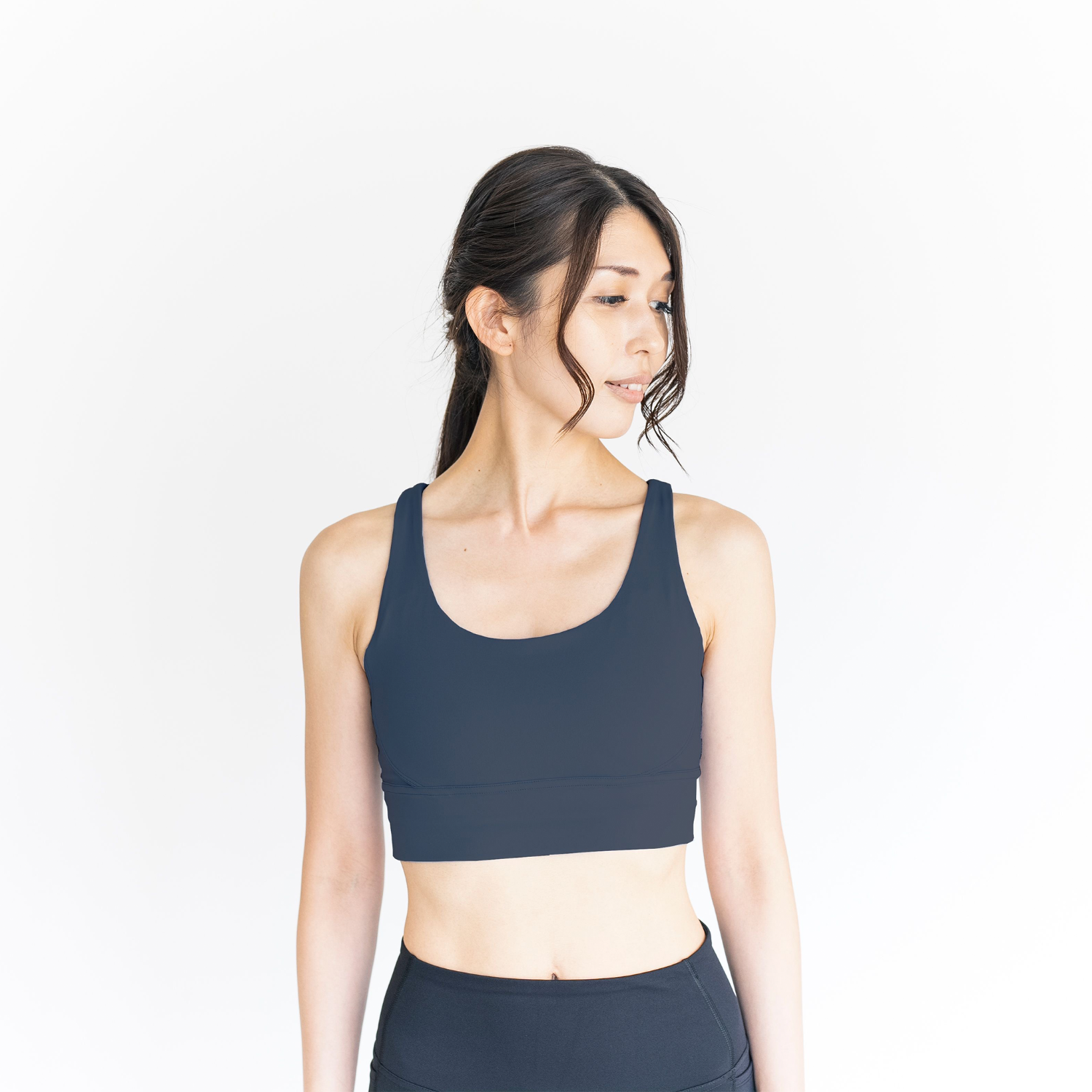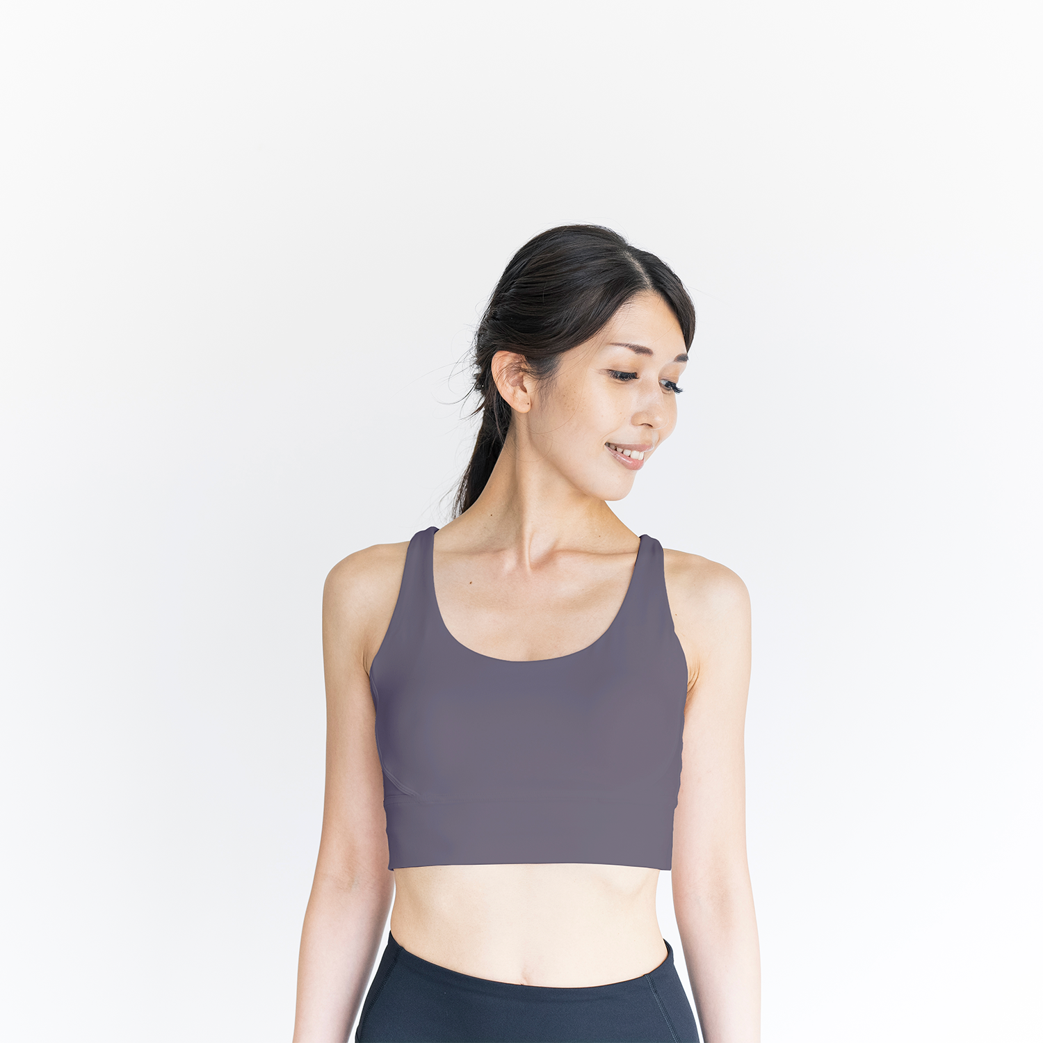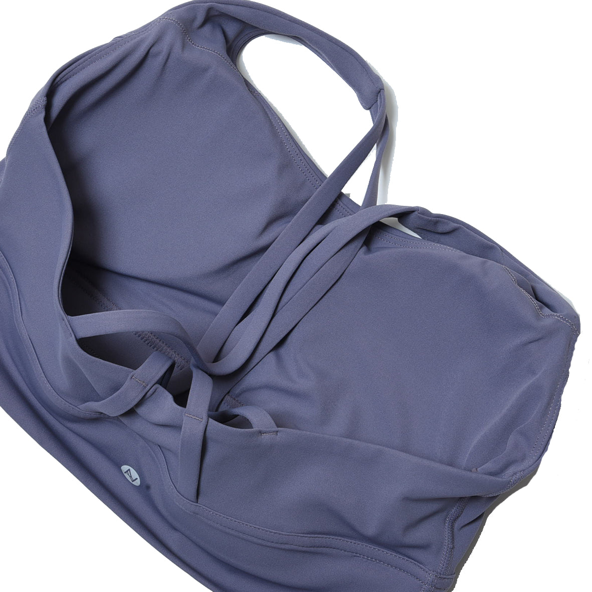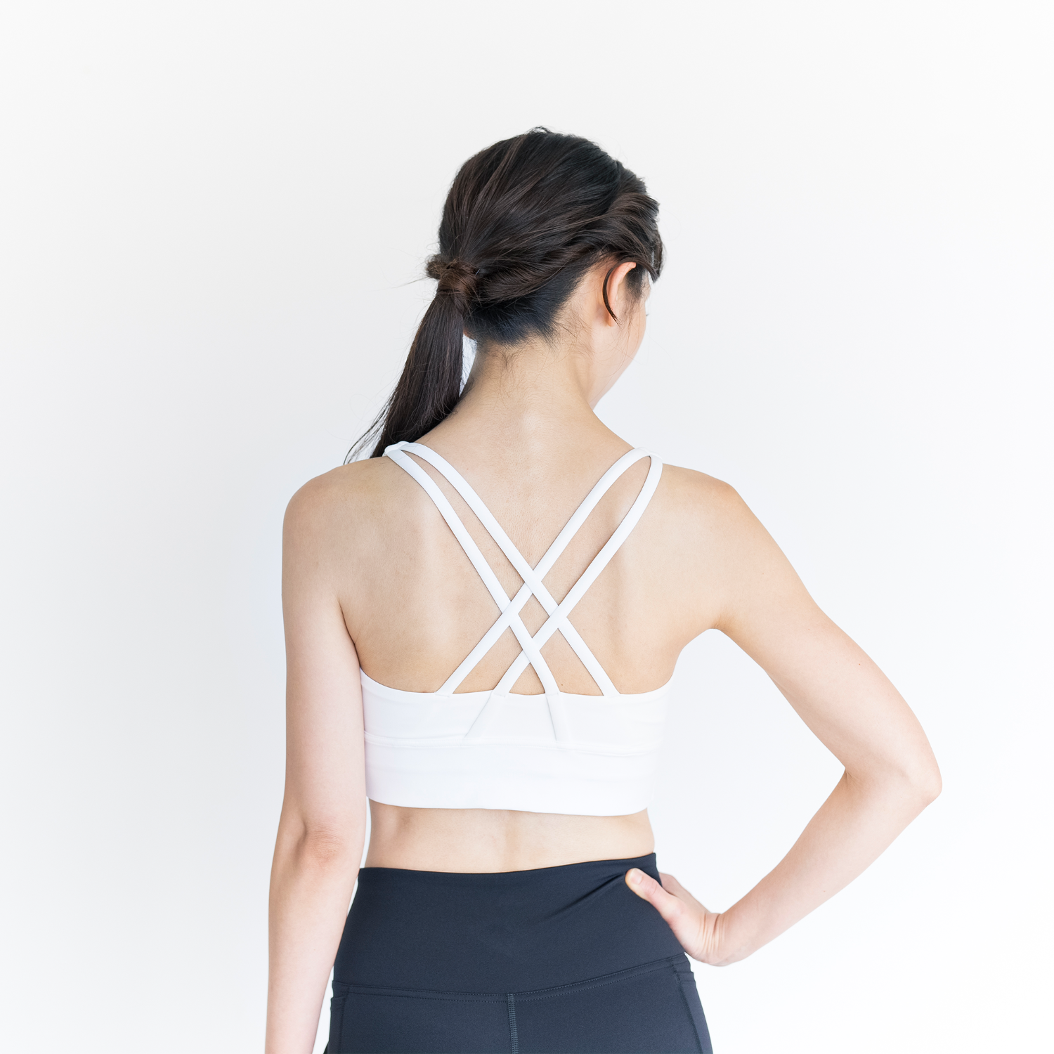 胸下のラインで胸が綺麗に見えるデザイン。ホールド感もあるので、安心して動くことができます。中のパットもずれにくく、洗濯もしやすいです。(おすすめ洗濯方法参照)バックスタイルのクロスしているデザインは背中を美しく見せてくれます。